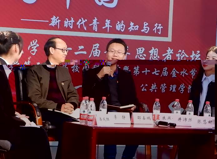 社會學系邵占鵬老師說到我們身處一個好時代、一個有挑戰性的時代、一個大有作為的時代,結合習近平總書記對廣大青年提出的四點期望:愛國、立志、求真、力行,提出新時代的青年應該處理好三種關系:理想與現實的關系、個人與社會的關系、信仰與世俗的關系,勇敢面對新時代的挑戰,攻堅克難,為民族的複興奉獻力量。