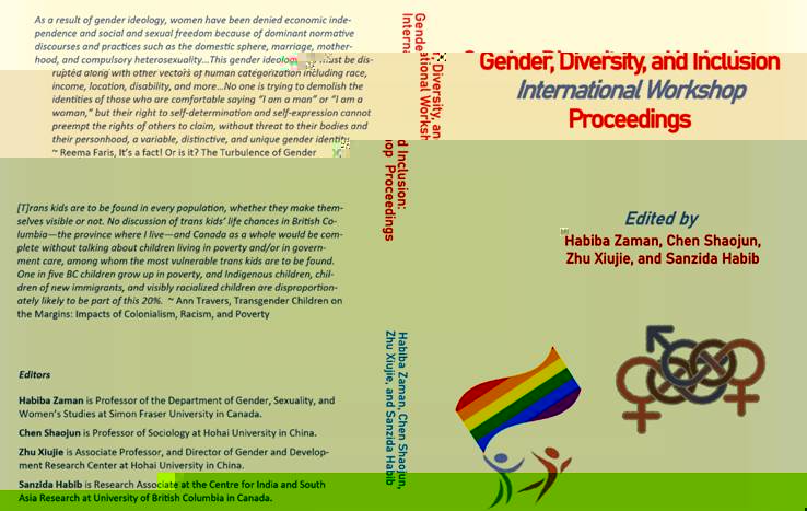 “社會性别、多樣化以及包容性”國際研讨會論文集于2021年1月由加拿大方正式刊印出版(ISBN:9781772870824 ,SFU Library Digital Publishing Link: http://monographs.lib.sfu.ca/index.php/sfulibrary/catalog/book/83)。加拿大西蒙菲莎大學社會性别、性以及婦女研究系Habiba Zaman教授,中國河海大學性别與發展研究中心陳紹軍教授、朱秀傑副教授,加拿大英屬哥倫比亞大學印度和南亞研究中心Sanzida Habib副研究員等4位學者擔任聯合主編。中心前主任施國慶教授為會議籌備和論文集出版工作做出了重要貢獻。