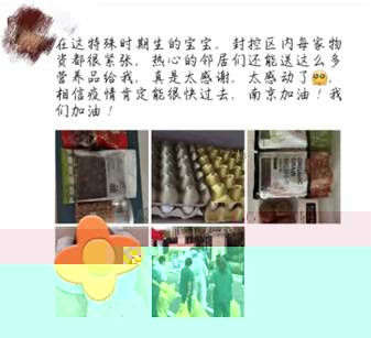 常夢豫利用自己的專業優勢,與團隊一起組織參與了許多抗疫活動。她通過本地同事的調研與需求分析,從祿口孕媽群體作為切入點,通過建立微信群聊“祿口孕媽互助群”了解孕媽第一需求,為祿口孕媽群體解決困難。此外,她還成立了志願者群招募居民志願者協助社區工作、為祿口街道寵物救助連接資源、開展疫情主題的線上公益課堂……