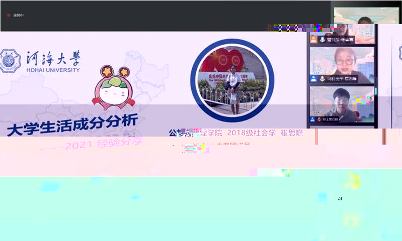 首先進行分享的是2018級社會學專業的崔思瞻,她從生涯規劃、學習、實踐與科研和社會工作等方面分享了大學生活的一些經驗。