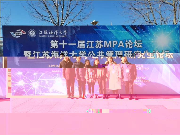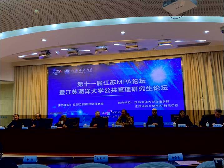 12月26日,由江蘇MPA論壇組委會主辦,江蘇海洋大學文法學院、MPA教育中心承辦的第十一屆江蘇MPA論壇暨“江蘇海洋大學公共管理研究生論壇”在江蘇海洋大學順利召開。全國 MPA 教指委秘書長楊開峰教授,全國MPA教指委委員李俊清教授、孫濤教授、麻寶斌教授、孫萍教授、章文光教授、顔佳華教授,全國MPA教指委秘書處辦公室主任謝佳宏等領導和專家應邀出席。來自省内20個MPA培養院校的BV伟德国际官方网站院長、師生代表等100多人參加大會。BV伟德国际官方网站院長黃濤珍教授、MPA中心副主任範倉海副教授,以及MPA同學等6人參加了會議。