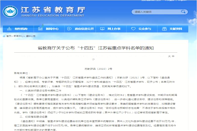 近日,江蘇省教育廳公布了“十四五”江蘇省重點學科名單,我院社會學學科成功入選A類,公共管理學科成功入選B類。是本次我校申報成功的10個學科之中2個文科類學科。