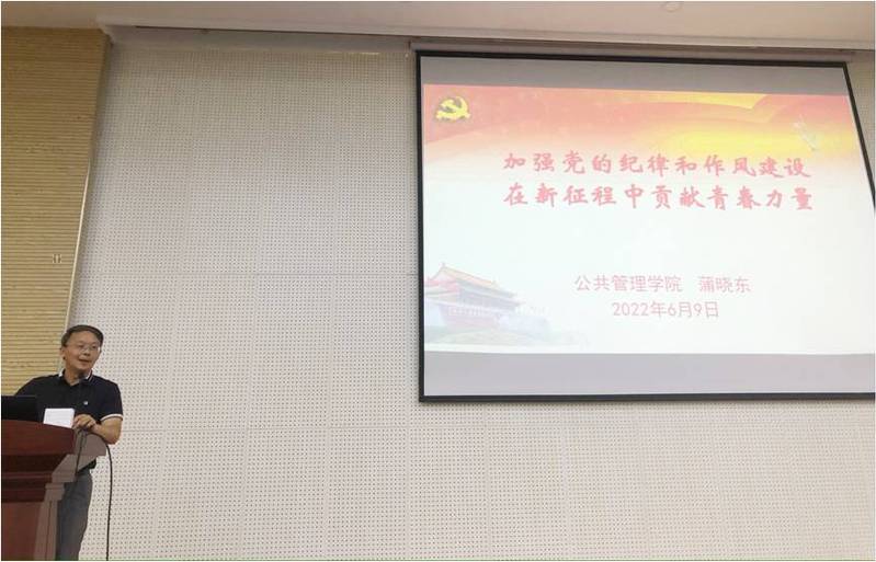 6月9日,BV伟德国际官方网站書記蒲曉東以《加強黨的紀律和作風建設 在新征程中貢獻青春力量》為主題,為全體2022屆畢業生黨員講授廉潔教育專題黨課。