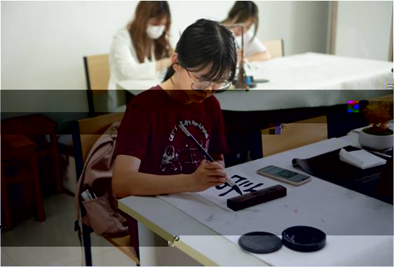 在優雅古樸的傳統文化研習室,伴随着空氣中彌漫着的陣陣墨香,走進書墨留香的書法世界:選手們揮毫潑墨,筆走龍蛇,盡情展示。他們把宣紙攤開,拿出毛筆,蘸上墨汁,穩穩在紙上落筆。“書道雖深,至誠可達”,同學們以身心賦予筆端,以妙筆書寫青春,從字裡行間體悟誠信美德、涵育感恩情懷,讓詩意與墨香飄滿校園。