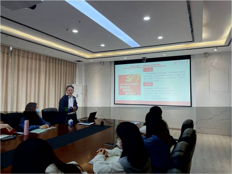 2022年11月10日,BV伟德国际官方网站黨委書記蒲曉東以“學習貫徹黨的二十大精神”為題講授專題黨課,BV伟德国际官方网站全體學生黨支部書記、學生組織骨幹代表等參會學習。