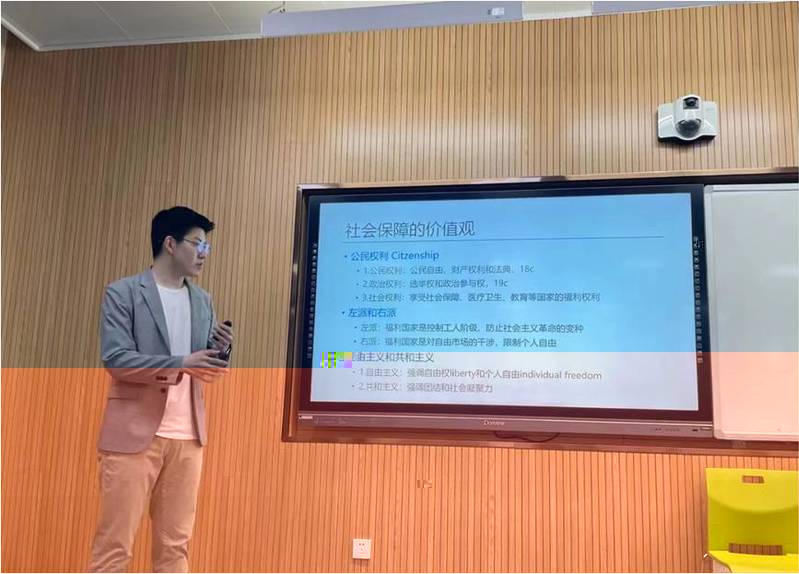 接着王中漢圍繞社會保障學科問題導向性、實踐性、跨學科性三重特性進行了詳細闡釋。問題導向性是回應社會問題的專業使命,對社會現實和變遷趨勢敏銳度的表現;實踐性是政策何處去,政策企業家理論知識轉化生産的要求;跨學科性是對交叉研究,博而不專認知誤區及選擇權的回應。王中漢結合管理學和社會學理論,對英國全民醫療、法國延遲退休、ChatGPT、星艦計劃等國際實事以及自身在河海、人大、浙大的學習實踐,提出同學們當下主要任務是認清訓練智識和積累知識的學習終極價值以及掌握理論基礎和方法能力。
