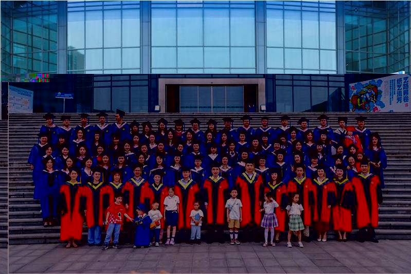 典禮結束後,畢業生們與出席領導和導師一起至圖書館前合影