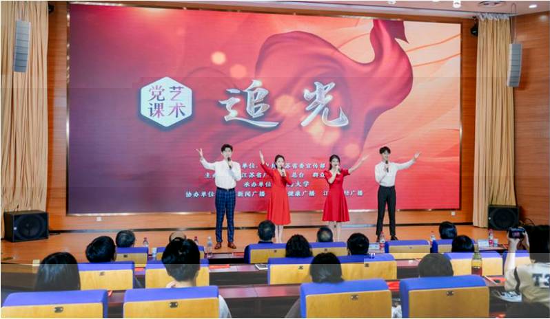6月30日,在迎來中國共産黨成立102周年之際,由BV伟德国际官方网站黨委作為承辦單位之一、聯合江蘇省廣播電視總台、群衆雜志社共同舉辦的藝術黨課《追光》在校本部西康路校區科學會堂報告廳開講,為師生送上了一堂沉浸式黨課。河海大學副校長許峰,江蘇省委宣傳部、江蘇省廣播電視總台有關領導,學校相關部門和學院負責人以及近200名師生黨員參加了本次活動。