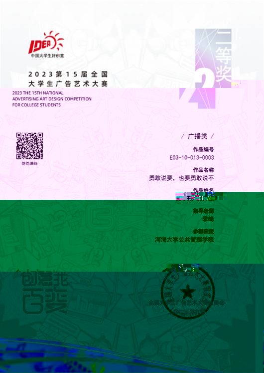 全國大學生廣告藝術大賽(簡稱大廣賽)是迄今為止全國規模大、覆蓋高等院校廣、參與師生人數多、作品水準高、受高校教師歡迎、有較大社會影響力的全國性高校學科競賽。在本屆大廣賽中,河海大學新聞傳播系播音與主持藝術專業、廣播電視學專業共計24件作品獲江蘇賽區省獎。經全國總評審,最終共有11件作品獲得國獎。
