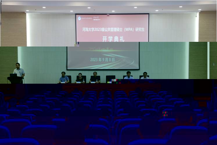 9月8日下午,河海大學2023級公共管理碩士(MPA)開學典禮在江甯校區厚學樓208報告廳隆重舉行。BV伟德国际官方网站黨委書記蒲曉東、院長朱新華、MPA教育中心主任黃濤珍、行政管理學系系主任曹海林、MPA教育中心副主任範倉海、MPA教育中心教學秘書王丹妮,以及河海大學MPA聯合會代表、2020級MPA老生代表、2023級MPA同學及家屬代表參加了本次開學典禮。典禮由MPA教育中心副主任範倉海主持。