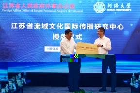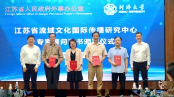 孫轶主任為中心授牌,孫轶主任和唐洪武書記為中心顧問頒發了聘書,在各位領導、專家的見證下,江蘇省流域文化國際傳播研究中心圓滿落成。