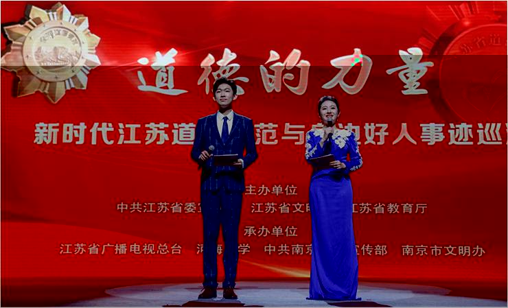 有一種精神,溫暖人心催人奮進;有一種力量,生生不息曆久彌新。9月27日,由中共江蘇省委宣傳部等單位主辦的“道德的力量”——新時代江蘇道德模範與身邊好人事迹巡演,走進河海大學。巡演由江蘇省廣播電視總台、河海大學共同承辦。江蘇省教育廳廳長、黨組書記、省委教育工委書記江湧,河海大學黨委書記唐洪武,江蘇省廣播電視總台黨委副書記、副台長、總經理陸峰,河海大學黨委副書記郭繼超等領導出席活動。巡演過程中,幾十萬大學生通過線上直播的方式收看本次巡演,感動落淚的面孔、經久不息的掌聲,印證着美德教育潤物無聲、成風化人。