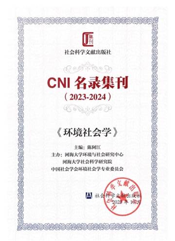 2023年10月26~27日,由社會科學文獻出版社及西北大學聯合主辦的第十屆人文社會科學集刊年會在陝西西安召開。本屆年會主題為“新起點·新征程——學術集刊與‘三大體系’建設”,來自中國社會科學院、社會科學文獻出版社等單位的專家和代表,國内外高校及科研機構的學術集刊主編、編輯部代表等莅臨參會。會議公布了2023-2024年社科文獻CNI名錄集刊名單和2023年度優秀集刊、優秀新創集刊名單。《環境社會學》集刊獲評CNI名錄集刊。