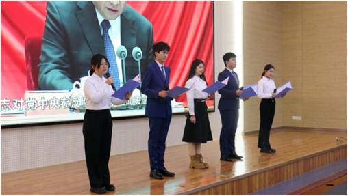 習近平總書記指出:“理想信念是共産黨人的政治靈魂。”如今在民族複興的偉大征程中,“平語”就是我們的信念來源。由鄭凱、張涵淼、李哲、陳梓源、史琢彧這五位同學組成的赓續前行隊,為我們帶來了原創作品《着平語之路赓續前行》。他們全情投入,以精彩的朗誦與默契的配合,生動闡釋了習近平總書記的治世哲學與思想智慧,歌頌了其人民至上的深厚情懷。
