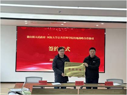 我院副書記朱志梅教授與社會學系主任顧金土教授與籍山鎮黨委書記陶鵬飛共同為安徽省南陵縣籍山鎮“學生實踐基地”與“調研基地”揭牌。