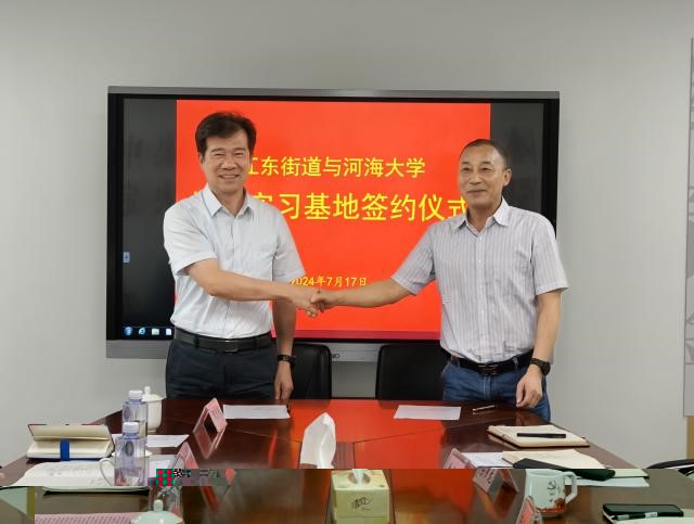 江東街道辦事處副主任餘夕龍、BV伟德国际官方网站(應管理與安全工程學院)副院長曹海林分别代表雙方進行簽約。江東街道黨工委書記浦健和BV伟德国际官方网站黨委書記吳寶海共同為實習基地揭牌。