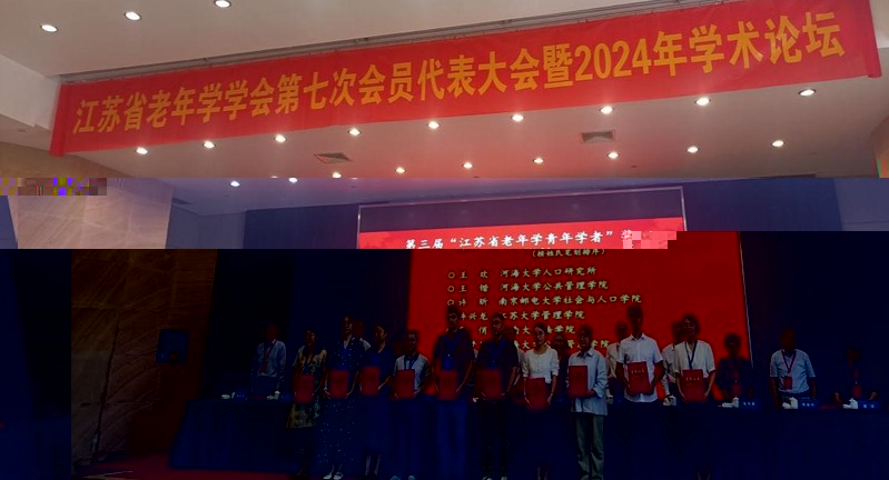上午舉行了“老年學研究與培訓基地授牌儀式”及“第六屆江蘇省老年學學會獎”頒獎儀式。我院多位教師獲獎,施國慶教授榮獲“傑出貢獻獎”;韓振燕、張鑫教授獲得“先進工作者”獎;王歡副教授、施旖旎副教授,王锴博士、李夢凡博士榮獲“第三屆青年學者獎”;孫中艮教授、陳際華教授、韓振燕教授分别擔任主任或副主任委員的老年學研究基地委員會、專家委員會、老年精神關愛專業委員會榮獲“優秀專業委員會獎”;河海大學榮獲“優秀研究與培訓基地”獎。河海大學再次被評為“江蘇省老年學研究與培訓基地(2024-2028)”。