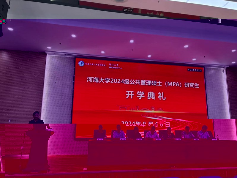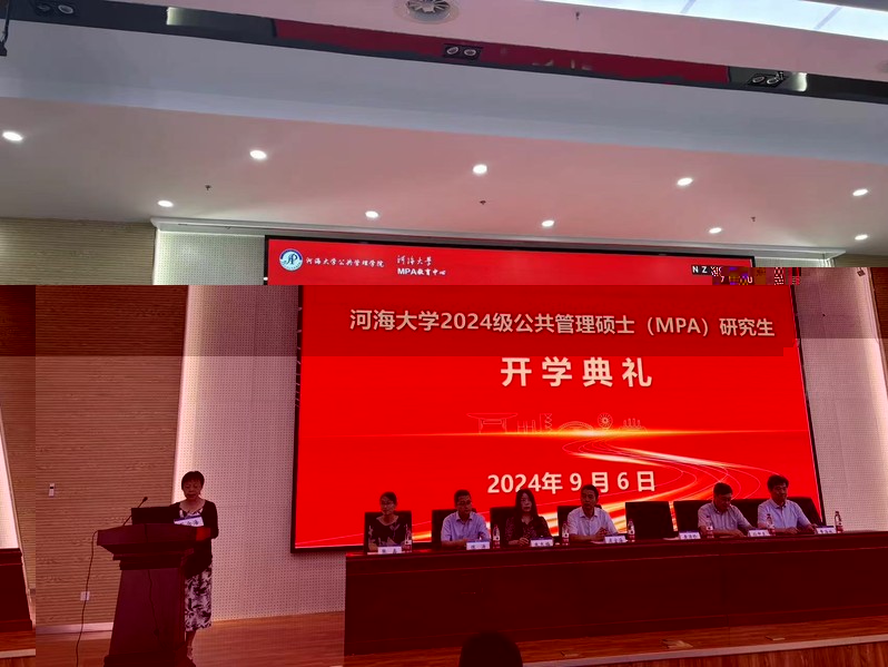 9月6日上午,河海大學2024級公共管理碩士(MPA)研究生開學典禮在江甯校區厚學樓208報告廳隆重舉行。BV伟德国际官方网站黨委書記吳寶海,MPA教育中心主任黃濤珍,BV伟德国际官方网站黨委副書記朱志梅,BV伟德国际官方网站副院長孫中艮、陳濤、曹海林,導師代表張鑫,MPA教育中心副主任範倉海,MPA教育中心教學秘書王丹妮,以及河海大學MPA聯合會代表、2023級MPA老生代表、2024級MPA同學參加了本次開學典禮。典禮由MPA教育中心副主任範倉海主持。