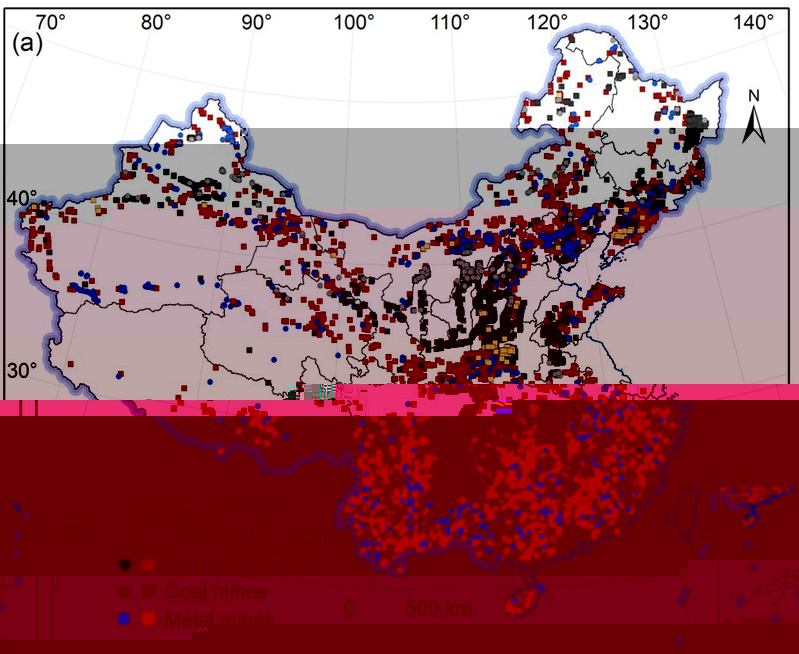 圖1 中國礦山空間分布(a)和采礦損毀與治理概況(b)