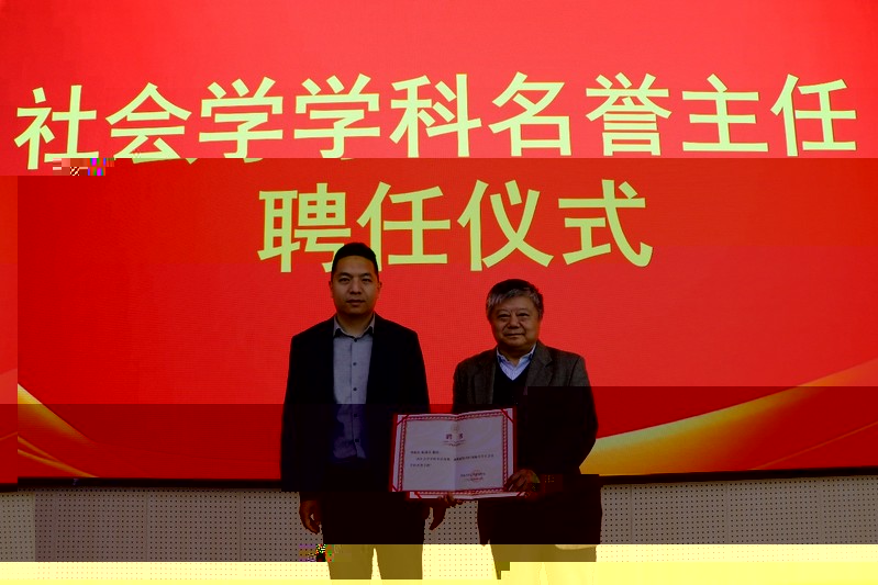 活動現場舉行了社會學學科名譽主任聘任儀式。施國慶教授被聘任為河海大學學科名譽主任。朱新華院長為施國慶教授頒發社會學學科名譽主任聘書。
