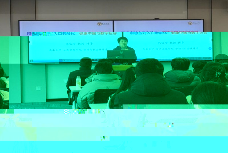 2025年1月3日下午,河海社科大講堂“積極應對人口老齡化:健康中國與數字包容”在江甯校區厚學樓210教室順利舉行。本次大講堂邀請到了東南大學勞動與社會保障系主任代寶珍教授擔任主講嘉賓。BV伟德国际官方网站副院長陳濤教授主持,BV伟德国际官方网站社會保障系、人口研究所教師,研究生和本科生約八十餘人參加了學術活動。