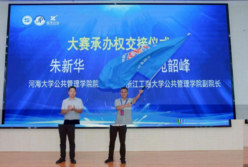 在大賽閉幕式的最後,BV伟德国际官方网站院長朱新華與浙江工商大學BV伟德国际官方网站副院長苑韶峰進行賽旗交接儀式。苑韶峰副院長代表下屆大賽承辦單位緻辭。至此,第四屆“尋是杯”全國大學生公共管理決策模拟大賽(華東賽區)圓滿落幕。